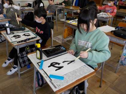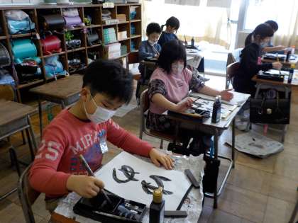 今回はひらがなで「ゆめ」と書きました。今まで書いていた漢字と違い、曲線が多いひらがなに苦戦していましたが、手本をよく見て真剣に練習していました。