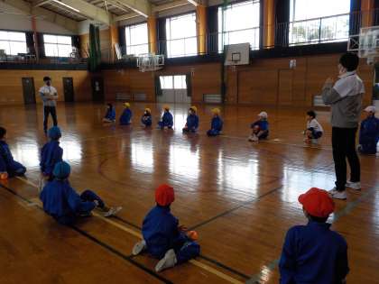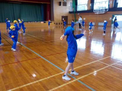 富山市スポーツ協会 スポーツ指導員の方にお越しいただき、ボール運動教室が行われました。子供たちは、肘やおへその位置を意識しながら、体全体を使って大きく投げることを楽しんでいました。