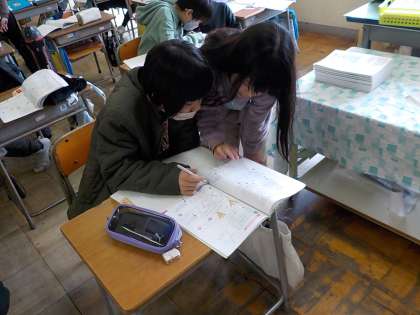 算数の問題に取り組む時間、友達の話を聞いて問題の解き方を理解する子や、自分の考えを友達に丁寧に説明する子など、自分たちで問題に取り組む子供が増えてきました。進んで話し合う姿がとても素敵です。
