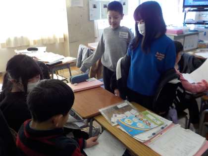 答えになるものを決めた後、3つのヒントを相手に出します。英語やジェスチャーで3つのヒントを一生懸命相手に伝えていました。