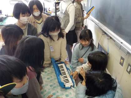 集会後、それぞれのカンパニーの周りに集まって、マジックをしたり演奏を聴いたりしていました。集会がとても楽しかったようで、仲良く遊んでいました。