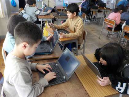 書いた作文を今日は班で発表し、クロムブックでお互いにコメントし合いました。