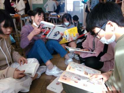 筆者の主張クイズを図書室の本を使って行ったり、勉強集会をしたりして学習に進んで取り組んでいます。