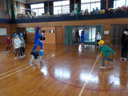 6年生と一緒に体育館でドッジボールをしました。大好きな6年生と遊べたことが楽しかったようで、教室に帰ってきてからもドッジボールの話題で持ちきりでした。