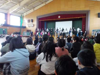 今日はずっと練習していた卒業を祝う集会本番でした。