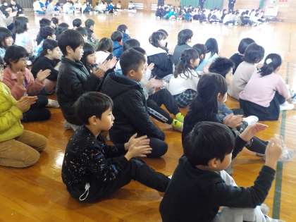 他の学年の発表を真剣に見ながら自分たちの出番を待っていました。