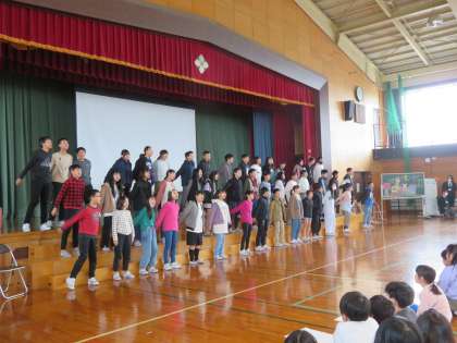 卒業を祝う集会を開いてもらいました。1〜5年生からの素敵な出し物やサプライズのスライドや歌に感動して涙を流す子もいました。6年生からはお返しで替え歌をプレゼントしました。とても温かい気持ちになった卒業を祝う集会でした。
