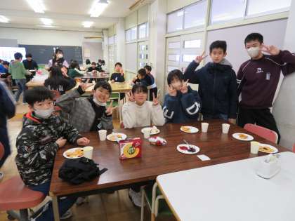 卒業プロジェクトの学年チームが進行を行い、家庭科の学習と兼ねて学年集会パート2を開きました。「中学校がバラバラになってしまう友達とたくさん話して思い出をつくろう」というめあてものと、クイズや写真鑑賞を行い、楽しい時間を過ごしました。