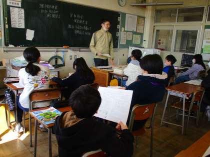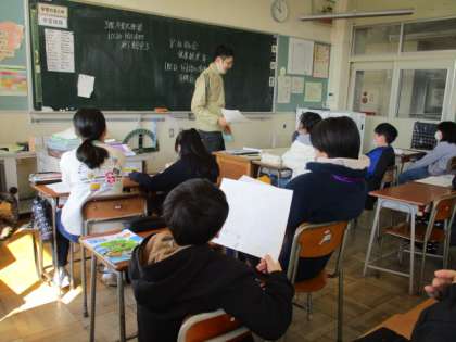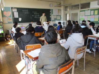 学年主任の先生の説明を聞きながら、ポイントを確認中です。防災対策の記述問題について考えながら、「うわっ、おしかったなあ」などとつぶやく声が聞こえてきました。