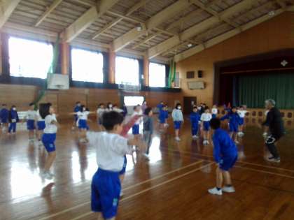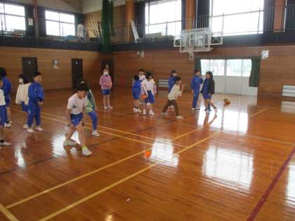 体育科では、短距離走の練習をしました。新聞紙を落とさないように走ることで走るときの姿勢を確認したり、自分の後方から転がるボールを追いかけることでスタートダッシュの練習をしたりしました。子供たちは、楽しそうに何度も走っていました。