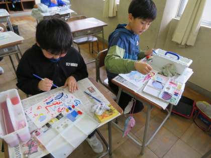 水の量や筆の動かし方を工夫して、いろいろな模様をつくりました。