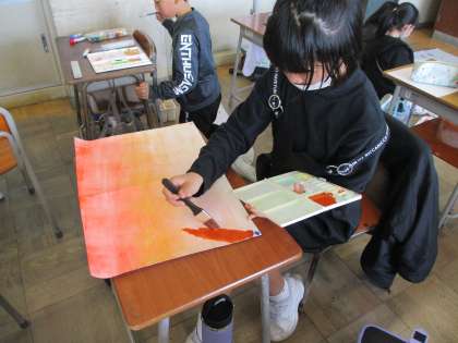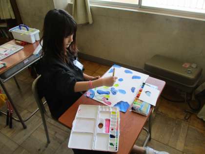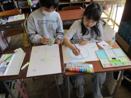 思い思いの「まぼろしの花」を考えて、絵を描きました。咲く場所や花の形を工夫して描いていました。