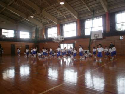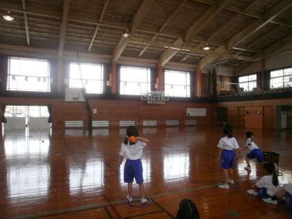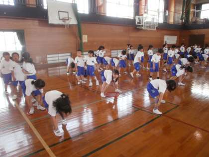 学年で体育科を行いました。様々な動きをして歩いたりボールを投げたりする等、からだをほぐしながら、楽しく運動しました。