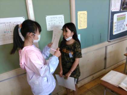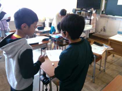 外国語科「Hello,friends!」の学習では、子供たちは友達の名前のつづりを尋ねる”How do you spell your name?"の表現を使って、交流しました。