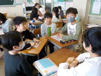 外国語科の活動では、好きな色やスポーツ、食べ物等を質問し合いました。