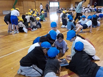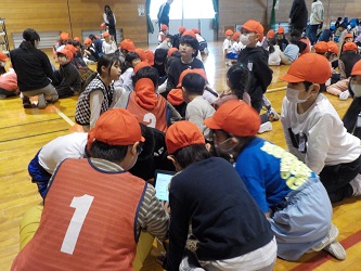 6年生 全校学活そよかぜ班(縦割り班)の仲間と、学校スローガンをつくる活動をしました。