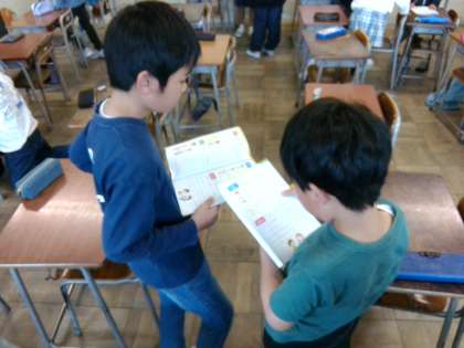 外国語活動では、好きなことを尋ねたり、答えたりしました。積極的に話しかける姿が見られました。