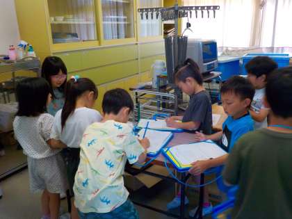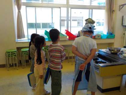 「家庭科室は5年生が料理の勉強をしていたよ、僕も料理したい」「音楽室にたくさん楽器があった」等、見つけた物や感じたこと・気付いたことを嬉しそうに話していました。