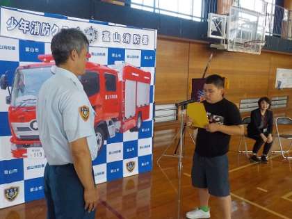 消防クラブの一員として火事に気をつけて過ごすことを誓い、BFCバッジを受け取りました。