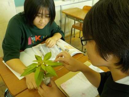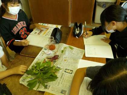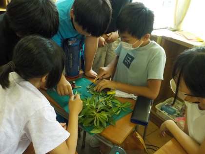 色がついた部分を見て、水が根から茎を通って葉へと伝わっていく様子が分かりました。