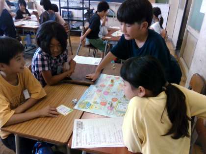総合的な学習の時間「学校SDGsを実現しよう」では、富山市役所の方ととやま環境財団の方にお越しいただき、地球温暖化について学習しました。クイズやすごろくを通して、地球温暖化の原因や影響等を教えていただきました。「電気をこまめに消したい」等と自分ができることを考えていました。