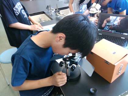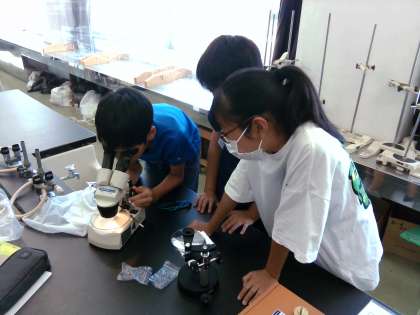 理科「魚のたんじょう」の学習では、解剖実体顕微鏡や双眼実体顕微鏡を用いて、メダカのたまごを観察しました。