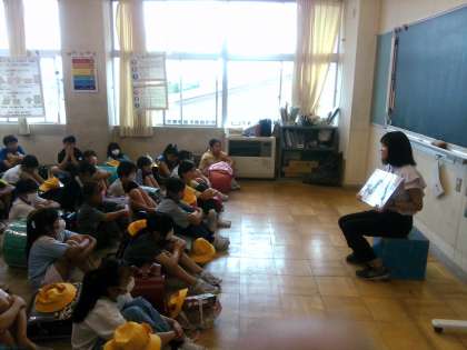 今日は、1学期の終業式でした。学年で集まり、1学期のがんばりを振り返ったり、2学期にがんばることについて考えたりしました。
