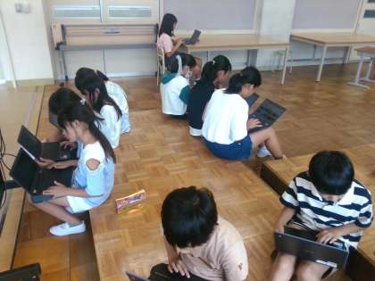 今日は、総合的な学習の時間で「広田の果てまで行ってQ‐謎解き工業バラエティー(多種多様な)‐」の導入を行いました。子供たちは、広田校区には、たくさんの企業があることに気付き、気になる企業について調べていました。