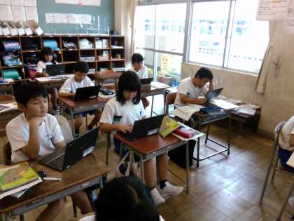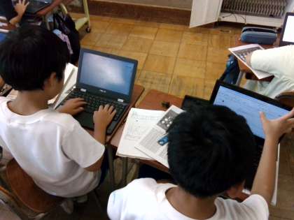 理科「月や星の見え方」の学習では、本やChromebookを使って気になったことを調べたり、ライトとボールを使って月の見え方を確認したりしました。見え方を確認した児童は、「だんだん影ができている!面白い!」「満月になった!」と感動していました。