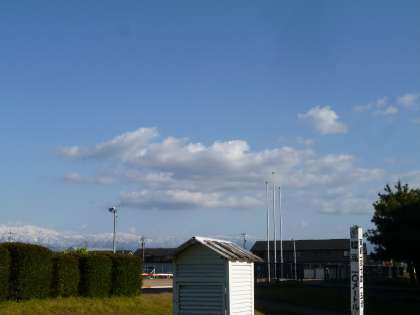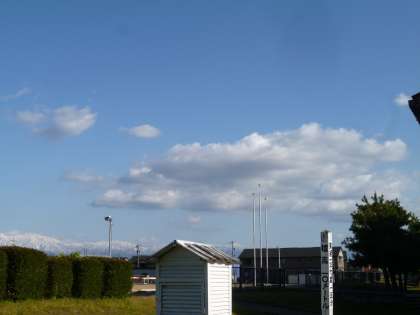 校庭の国旗掲揚塔を目印に雲を見ると、雲が動いているのがわかります。