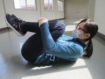 次にそのまま身体を後ろにかたむけて、ゴロッとたおれます。