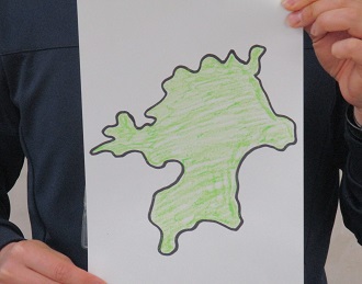 これはどこの県でしょう。先生は「しいたけ」に見えます。特産品は「からし明太子」「とんこつラーメン」「太宰府天満宮(だざいふてんまんぐう)」です。正解は次回、お楽しみに。