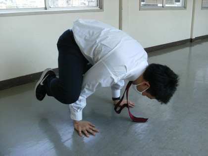 「かえるバランス」はうでで体をささえるうんどうです。みんなはどれくらいできるかな?