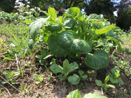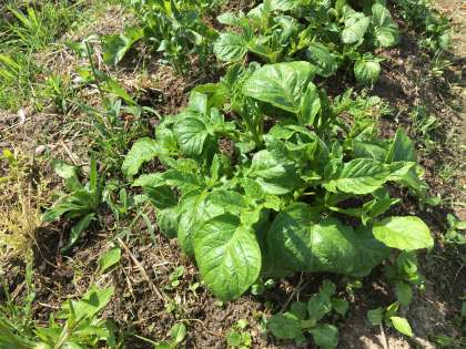 じゃがいもの芽はぐんぐん大きくなり葉が何重にも重なってきました。