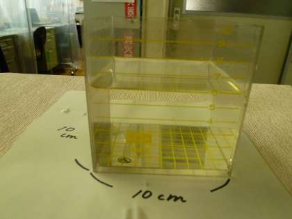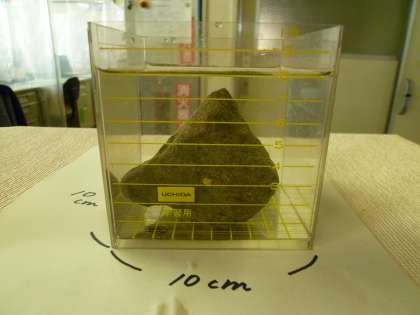 そこに石を入れたところ、水の高さは8cmまで上がりました。