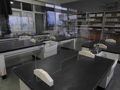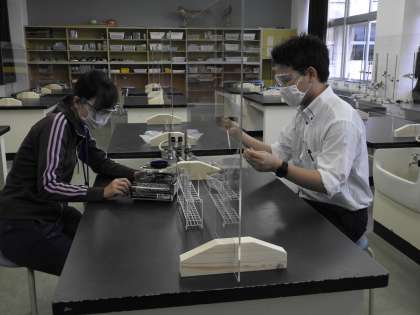理科室の机の上に、アクリル板のシールドを設置しました。