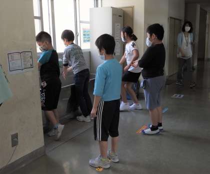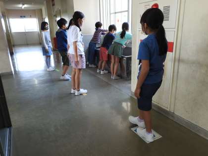 並ぶときには、ソーシャルディスタンスを意識しています。ウイルスを洗い流すように一生懸命手を洗っています。