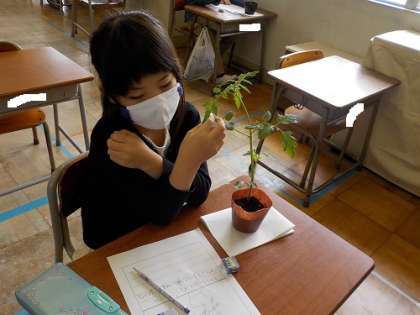じっくりとかんさつをしてからやさいのなえをうえました。
