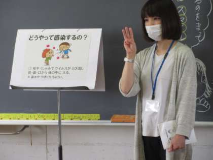 「なぜ、一日に6回も手を洗うのか」、「なぜ、互いの距離をあけるのか」などの理由が、コロナウイルスの特性からきていることが腑に落ちれば、生活様式を変えていこうと自分から思えるようになる、と考えこの学習を行っています。
