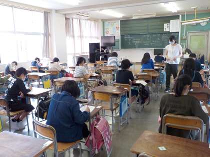 算数科では、分数÷整数の計算の練習です。ノートに丁寧に問題をかき、どんどん解いていました。