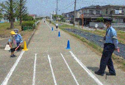 校区の危ないところには、警察署、交番、交通安全協会など、安全のエキスパートの方々が立って、優しく的確に声をかけていただきました。