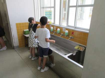 今日から、密を避けて、教室ごとに時間を分けて歯磨きをすることにしました。