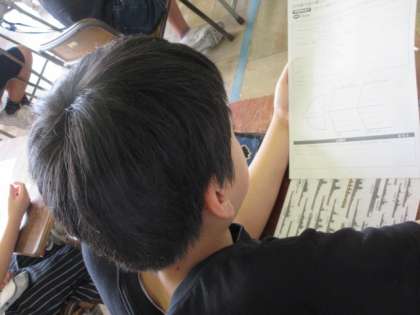 今日は、フィッシュボーン(魚の骨状)という思考ツール<写真>を使って、考えを絞り出していました。