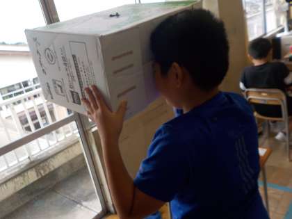 図画工作科では「のぞいてみると」の作品製作をしています。