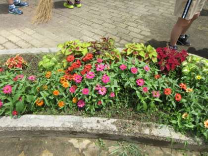 花壇の花も、世話をしているおかげで、きれいに咲いています。