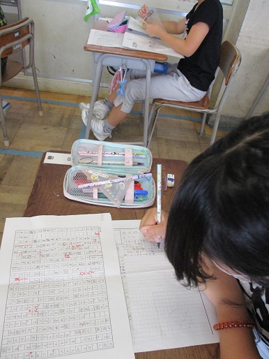 国語科「新聞を作ろう」の学習では、自分が興味のあるテーマについて資料を使って詳しく調べています。事実を分かりやすくみんなに報告するためにはどうすればよいか、見出しや記事の内容、全体の構成などを工夫しながら新聞作りに励んでいます。みんなに聞いたアンケート結果もうまく表にまとめました。