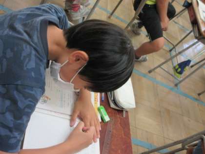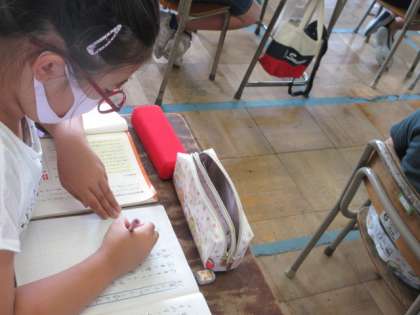 ノートをのぞくと、筆圧のあるしっかりとした字を書いて学習を進めていました。