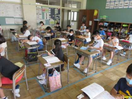 どの教室でも、ちゃくちゃくと学習を進めています。 教室の中は、涼しいです。