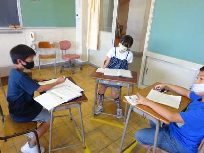 今日の国語では「山小屋で三日間すごすなら、どんな物を持っていきたいか」というテーマで、対話の練習をしました。