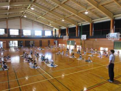 体育館では、指定された2つの学年(1・2年)で合同学習をしています。